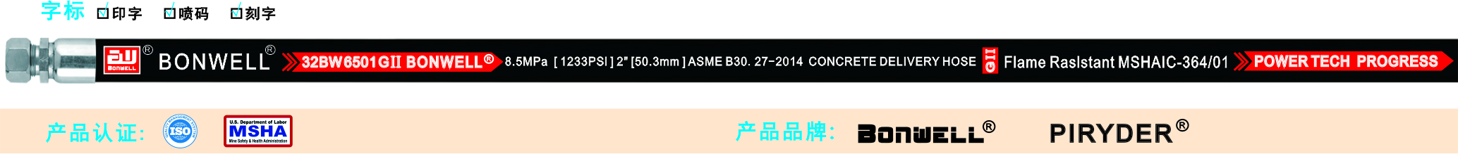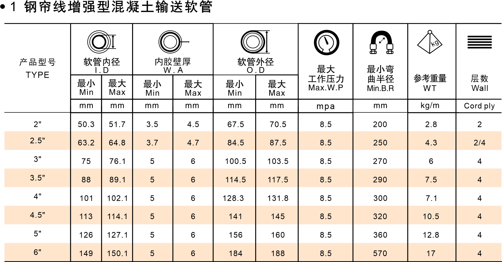 BW6501 CONCRETE DELIVERY HOSE 纖維增強層混凝土輸送液壓軟管